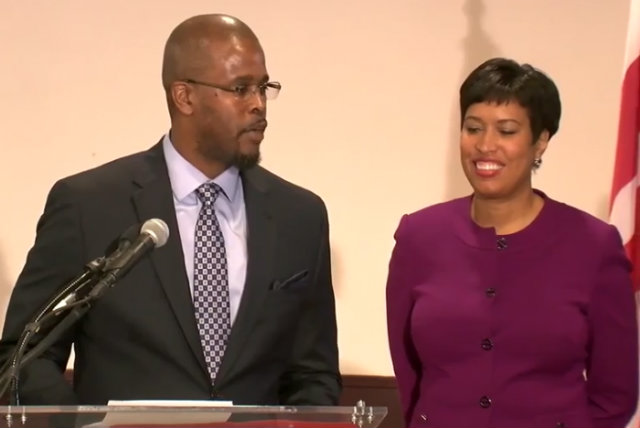 Antwan Wilson and Mayor Muriel Bowser at press conference announcing his nomination.