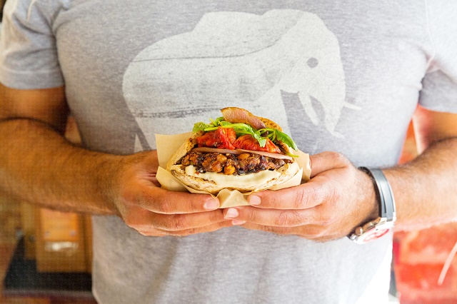 The veggie burger at Shouk makes meat an afterthought. (Photo by Joe Cereghino)