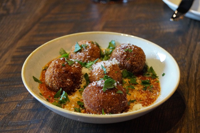 The crunchy meatballs at Alta Strada make for a comforting start to a meal or late-night bar snack. (Photo by Travis Mitchell)