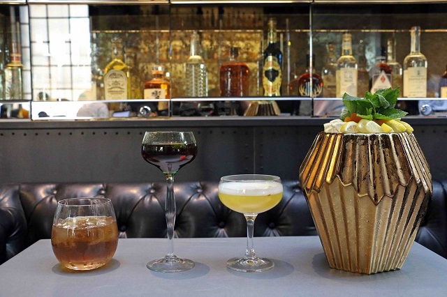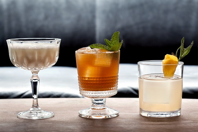 A trio of cocktails from the bar at Radiator, inside Kimpton’s Mason & Rook hotel. (Photo by Jennifer Hughes)