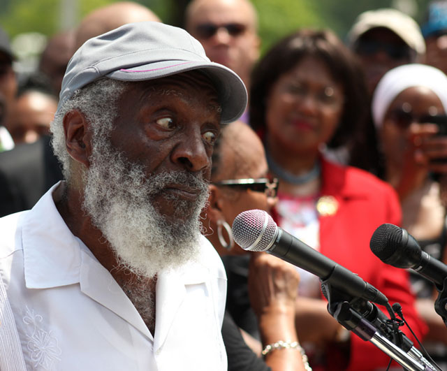 Dick Gregory at a 2013 rally for Trayvon Martin. Photo by Flickr user Elvert Barnes.