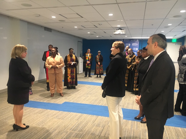 Before the ceremony kicked off, religious leaders gathered upstairs for their own prayer circle, led by Rabbi Michael Namath. The program director of the Religious Action Center of Reform Judaism called upon their obligation to the world to “make it whole and holy.”