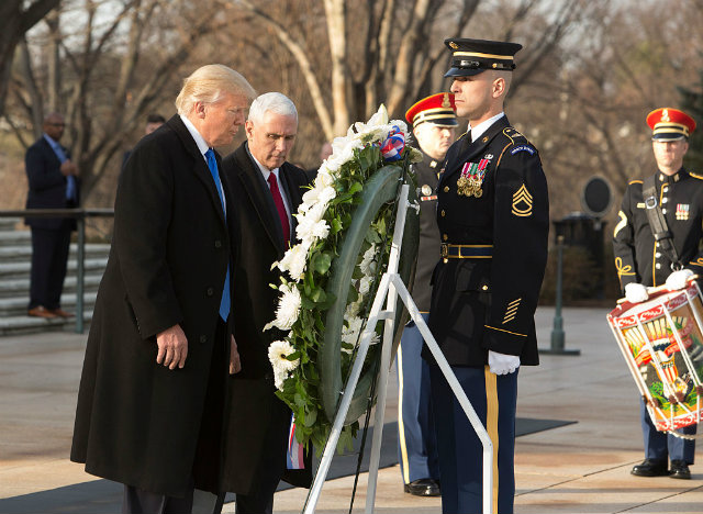 President-elect Donald J. Trump and Vice President-elect Mike Pence participate in a wreath laying ceremony at Arlington National Cemetery. (Photo by Chris Kleponis-Pool/Getty Images)