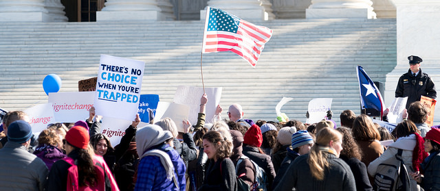 A group rallies outside the Supreme Court during the Whole Woman’s Health v. Hellerstedt case. (Photo by Victoria Pickering)