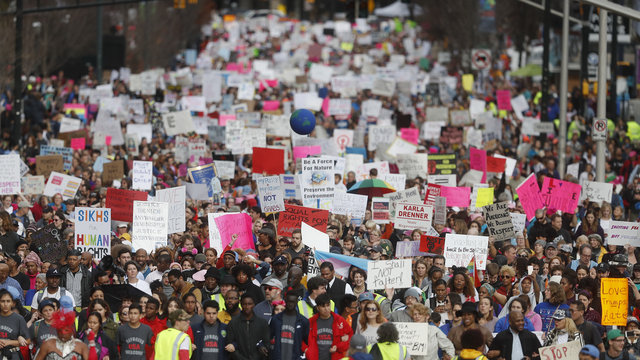 In D.C., the march was so packed to the point of the route changing mid-march. Metro recorded 1 million trips, setting a record for Saturday trips and marking the second-busiest day for the rail system ever (the record is 1.1 million trips, for President Obama’s 2009 inauguration).