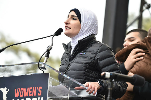 Linda Sarsour speaks onstage during the Women’s March on Washington. (Photo by Theo Wargo/Getty Images)