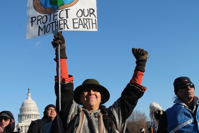 Hundreds of activists rallied and marched in downtown D.C. this December in a show of solidarity with Dakota Access Pipeline Water Protectors. (Photo by Julie Strupp)