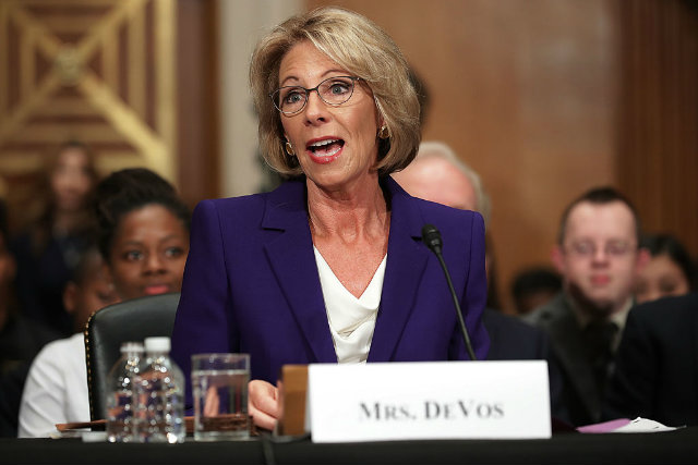 Betsy DeVos testifies during her confirmation hearing. (Photo by Chip Somodevilla/Getty Images)