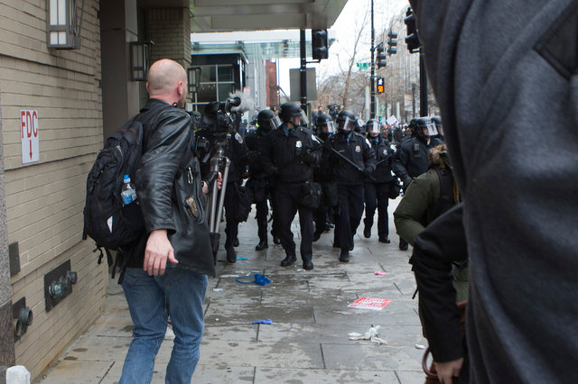 Monica Hopkins-Maxwell, executive director of the American Civil Liberties Union of D.C., said that, “as more details emerge about the conduct of the Metropolitan Police Department on Inauguration Day,” her organization is “concerned that law enforcement may have violated demonstrators’ rights” by indiscriminately corralling people, including legal observers and journalists; by “using pepper spray without justification;” and by keeping people outside for long periods of time without access to bathrooms or food.