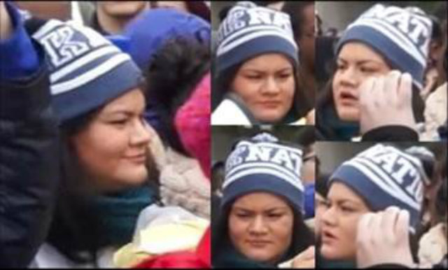 A video of the incident shows a group of anti-Trump protesters chanting “Love Trumps hate!” at supporters of the president. Trump fans begin taking photos in front of an anti-Trump protester. When one finishes taking a photo, someone notices that her hair is on fire. The video zooms in on a hand that takes a lighter to the woman’s tresses from somewhere behind the sign.