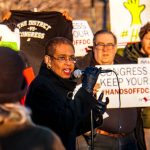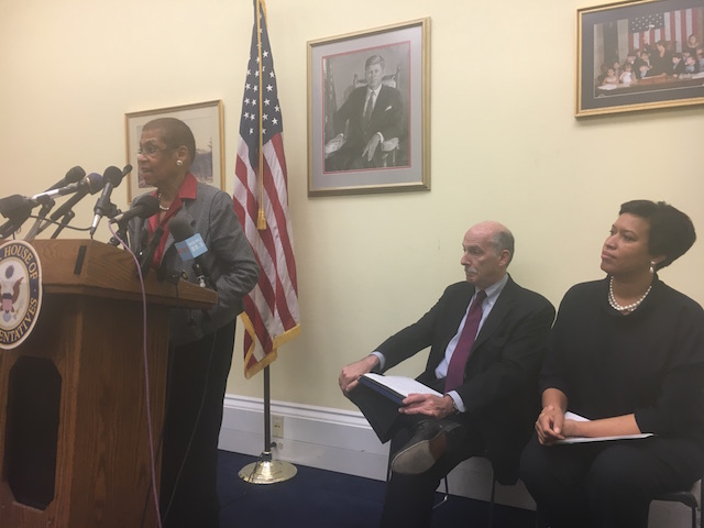 D.C. Delegate Eleanor Holmes Norton speaks at press conference on the Hill, alongside Council Chair Phil Mendelson and Mayor Muriel Bowser. (Photo by Rachel Kurzius)