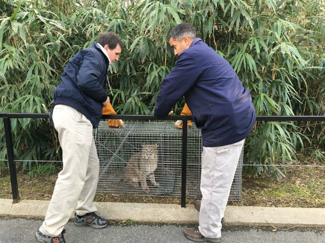 A visitor saw the 25-pound cat crossing a path near the bird house and alerted keepers there. Saffoe and another staffer grabbed the equipment they had on hand and hurried over to the area. “We took the live traps up to the bird house and set them, you know, crossed our fingers, and walked away. And literally within fifteen minutes, the bird house keepers called us back and told us we have a bobcat in the trap,” Saffoe said. “We’re over the moon.”