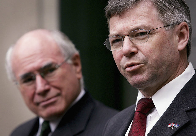 Former Norwegian Prime Minsiter Kjell Magne Bondevik (R) was held for an hour at Dulles, evidently because he has visited Iran in 2014. (Photo by Ian Waldie/Getty Images)