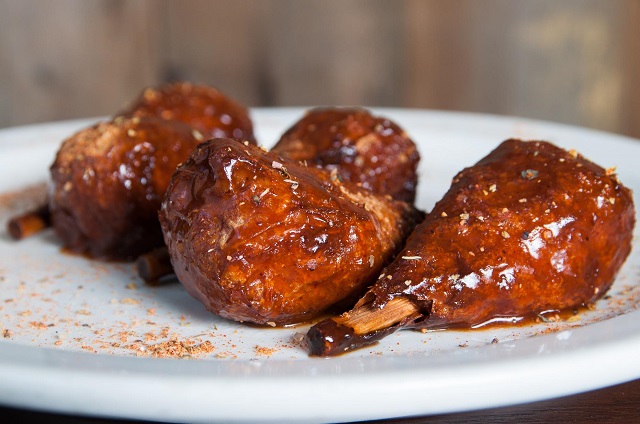 One of the most famous vegetarian barbecue offerings in the area are the smoked vegan wings at Smoke and Barrel (2471 18th St. NW). The seasoned balls of smoked seitan on a stick are served up fried with an assortment of house-made sauces. The wings are supplemented by a fleet of other meat-free options at the restaurant, including vegan spare ribs (also made from seitan) and a variation of the restaurant’s classic barbecue sandwich made with tofu and smothered with coleslaw, sauce, and a pickle.
