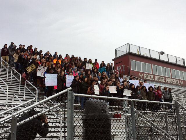But the walkout at Rock Ridge was the day’s biggest. At 2:30 p.m., just before the start of the last day’s class, approximately 200 Rock Ridge students of different races and religions peacefully walked out to the football stadium bleachers (disclosure: my mother works at the school).