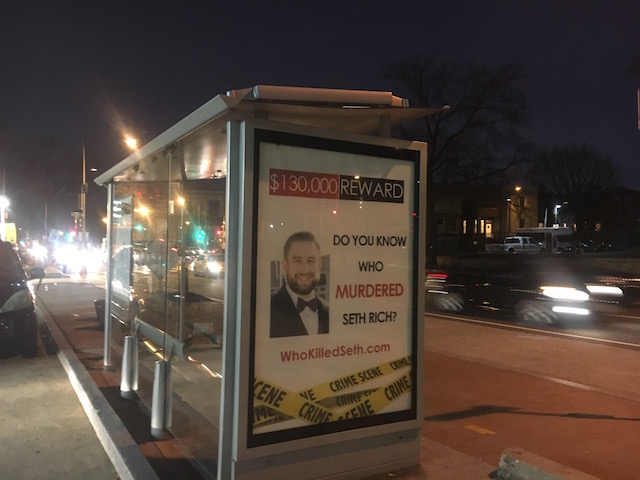 Billboards and flyers with Rich’s face still paper the Bloomingdale neighborhood where he lived and died. Now, a Republican lobbyist who says he tasked himself with investigating Rich’s death to “bring closure to the family” claims to have “the first real break in the case we’ve had in almost 8 months of tireless work.” In September, Jack Burkman offered a $100,000 reward for information that would lead to a conviction in Rich’s murder. Burkman and the Rich family held a joint press conference in late November to announce a new push for information that included the billboard campaign.