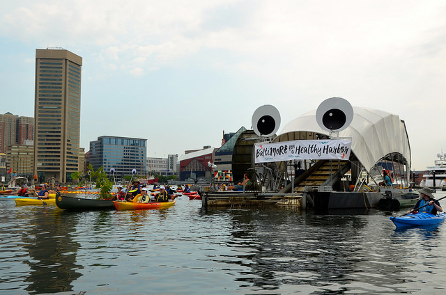 Yes, Baltimore’s Professor Trash Wheel has a Twitter account. (Photo courtesy of Baltimore’s Waterfront Partnership)