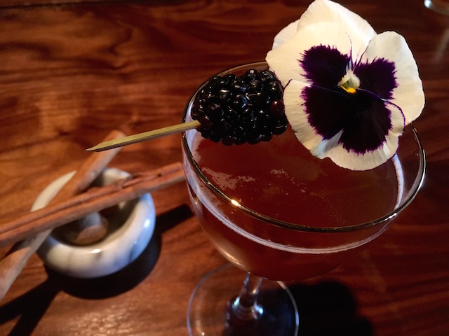Imhof’s Protocol, Geritol and Alcohol has Stonewall American Colonial rum, clementine, and cardamom shrub and Don Ciccio’s Nocino sweet walnut liqueur. The vinegar and cardamom zip keeps the drink from becoming too sweet or tropical. It’s more of an old classic cocktail, but one that couldn’t have been made in D.C. until this century.