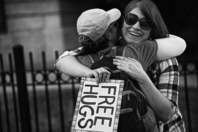 Grab a free hug at the Dupont Circle Fountain on Monday evening. (Photo by Miki J.)