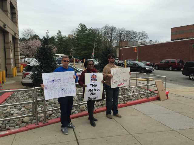 Two Lafayette Elementary teachers and one representative from the Washington Teachers Union office called for the mayor to reach an agreement that raises their salaries. (Photo by Mark Lieberman)