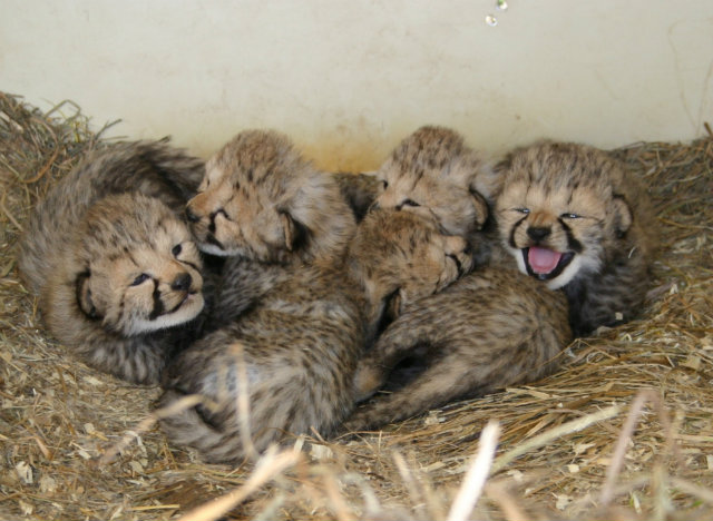The average litter size is three, according to SCBI cheetah biologist Adrienne Crosier. “So this time we’ve got an incredible pile of cubs,” she said in the release. Each litter has two males and three females.