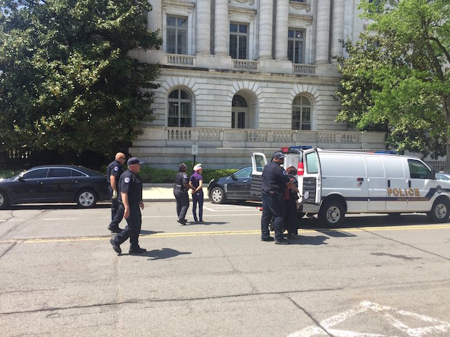 Less than half an hour after the giveaway began, Capitol Police began to arrest some of the weed activists who were handing out joints to Congressional staffers and other Capitol Hill employees. The giveaway continued despite the arrests on three separate occasions. It took police officers confiscating all of the remaining marijuana, some 1,000 joints, to shut down the event. Prior to that, the group had given away joints to around 100 people, according to DCMJ co-founder Nikolas Schiller.