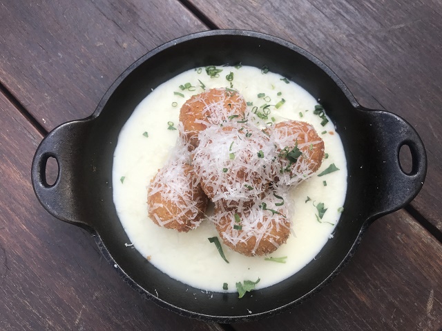 Up at Little Coco’s (3907 14th St. NW), owner Jackie Greenbaum says the basket of truffle and Parmesan arancini ($10) are a fixture of the menu. They’re currently accompanied by a fontina fonduta sauce—a blend of cheese, cream, butter, and egg yolks.