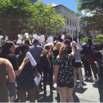 The incident caused AU students to walk out of a town hall meeting on Tuesday and gather on campus for a march. Some of them also obtained withdraw forms from the university. Campus police announced a $1,000 reward for information related to the incident, which they deemed a hate crime, and released two videos that show a possible suspect.