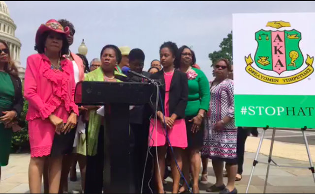 Dumpson stood alongside Texas Representative Sheila Jackson Lee today at a press conference on Capitol Hill that addressed the incident.