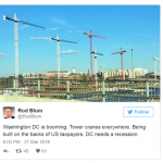 Washington DC is booming. Tower cranes everywhere. Being built on the backs of US taxpayers. DC needs a recession. pic.twitter.com/BcE8kRPfUq
