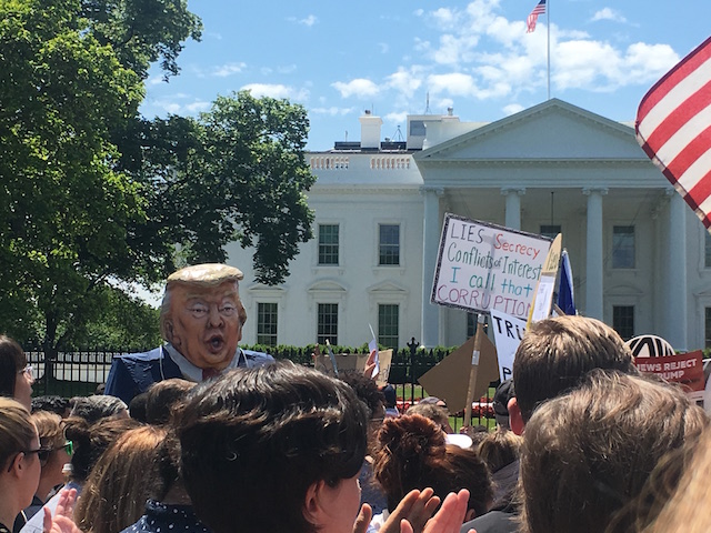 Hundreds of people gathered at the White House today—some moseyed over from nearby offices on their lunch break, while others had flown into D.C. this morning—to protest President Donald Trump’s termination of FBI Director James Comey.