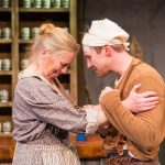 The film Ali: Fear Eats the Soul was inspired by the 1950s Technicolor melodramas of Douglas Sirk, specifically the May-December romance of All That Heaven Allows. On stage, Ceville’s salt-and-pepper hair undercuts what is supposed to be a 20-year age difference with Emmi, and he’s immediately likable, forming a cute stage couple out of what was not exactly a cute film couple. With the flat characters around them spouting polemic, Fear Eats the Soul addresses hot-button issues like race and immigration, but at its heart this is a love story that transcends politics.