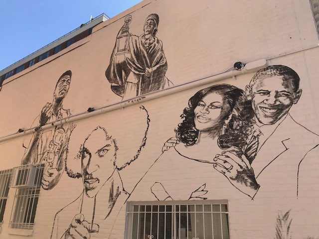 Already, as artist Aniekan Udofia sketches the outlines on the side of the iconic U Street building, figures of D.C. luminaries old and new have started to emerge: Harriet Tubman, Dick Gregory, Dave Chappelle, Marion Barry, Muhammad Ali, Taraji P. Henson, Jim Vance, Wale, Russ Parr, Donnie Simpson, Chuck Brown, Prince, and Michelle and Barack Obama.