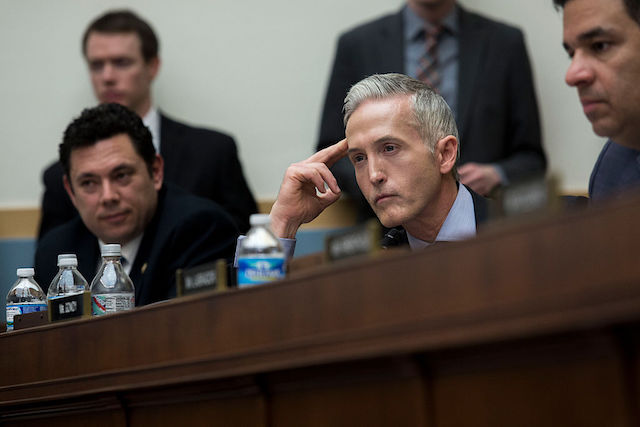 The forthcoming House Oversight Commitee Chair, Trey Gowdy (R), and the outgoing chair Jason Chaffetz (L) (Photo by Drew Angerer/Getty Images)