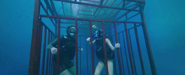Yeah. That’s the premise. Their cage breaks away from the boat and they plummet 47 METERS DOWN TO THE OCEAN FLOOR and have to survive in something resembling real time.