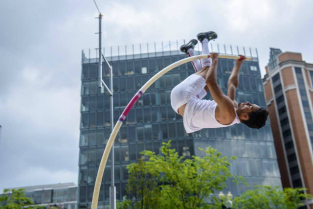 Canadian Shawnacy Barber won the last world championships by clearing 5.9 meters—over 19.3 feet. Barber will competing in downtown D.C. alongside a number of other top pole vaulters, including fellow Olympian Kelsie Ahbe, the Dominican Republic pole vault record holder Joshuah Alcon, and a world champion in the master’s division, Howard Booth.