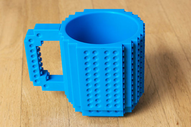This clever Build-On Brick Mug delivers a coffee break and work break all at once. Designed with a familiar peg and hole surface, you can design unique toy construction brick structures all over it — because adults need to play too.