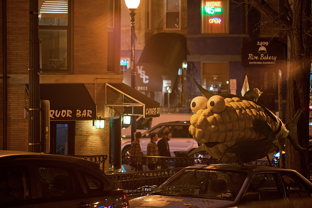 He’s still figuring out what exactly to do with Fishy Sugar Beet (2013’s ugliest car in America) and Fishy Soybean. A number of people have said the soybean kind of looks dragon-esque or like a bumpy green seahorse, so he’s gotten in touch with the Adams Morgan BID to see if they’d like to re-brand the character and erect it somewhere, perhaps in a park (no word back yet). He’s also reached out to the Smithsonian Museum of American History, which has asked him to donate protest art in the past. If there’s no takers, they may end up on eBay, too.