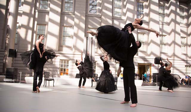 Dana Tai Soon Burgess Company performing “The Foster Suite: The Remains of Loss and Longing” in the Kogod Courtyard in 2016 (Jeff Malet)