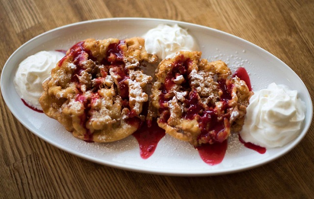 Funnel cakes can be used in savory dishes, too. It gets a north-of-the-border treatment at The Commodore Public House (1100 P St. NW), a neighborhood bar just off Logan Circle. The funnel cake here is served as County Fair Poutine, and topped with Virginia cheese curds, smoked pork, and gravy ($12). Over at Provision 14 (2100 14th St. NW), the restaurant swaps out waffles for funnel cakes in its chicken, funnel cake, and maple gravy brunch dish. It’s a perfect American-Canadian mashup.