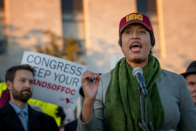 Mayor Muriel Bowser speaks at a rally in February urging Congress to keep its hands off D.C. law, ahead of a FEbruary hearing to block the Death with Dignity Act. (Photo by Lorie Shaull)
