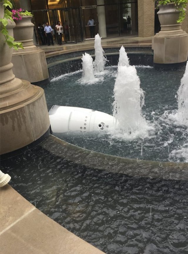 “Security robot, yes. Submarine robot, no. Got it,” Knightscope tweeted in response to several viral images that showed one of its K5 Autonomous Data Machine bots drowning in a shallow fountain on the Georgetown waterfront (what a way to go).
