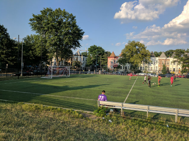 “This is the go-to spot for everyone in the neighborhood,” says James Akinsanya, who grew up in Columbia Heights and frequently joins the pick-up games. “It’s right here. It’s easily accessible, and it’s a pretty nice field. We come over here and we take care of it and we play soccer, that’s about it.”