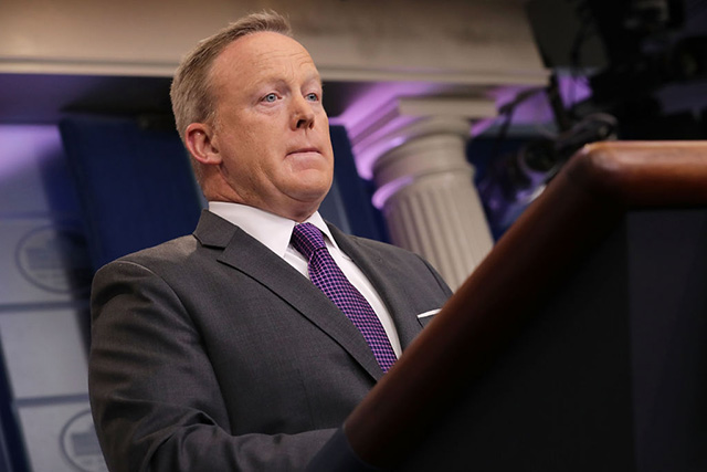 Sean Spicer during an off-camera White House press briefing on July 17, 2017 (Getty Images)