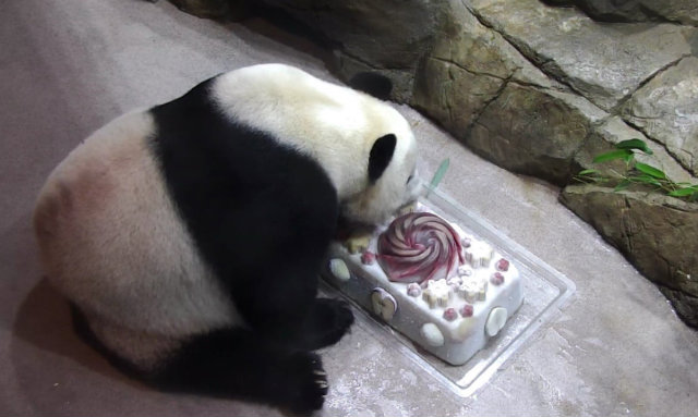 ?? Happy 19th birthday #MeiXiang! She got a special frozen cake to celebrate #PandaStory pic.twitter.com/HzXs5qHHRN