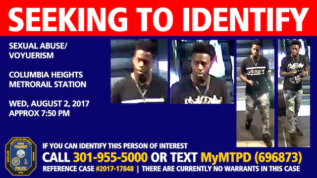Metro Transit Police detectives are looking for other victims of a man who allegedly took photos up a number of women’s skirts at Columbia Heights station on Wednesday evening, and are hoping the public will help identify the man, who stands accused of voyeurism and sexual abuse.
