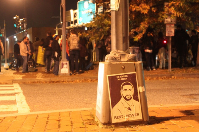 A sign near the corner where Terrence Sterling was fatally shot by MPD Officer Brian Trainer. (Photo by Julie Strupp)