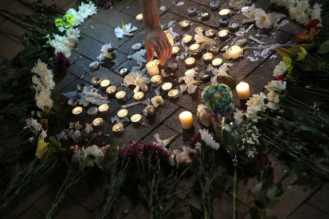 Flowers and candles left for victims in Charlottesville on Saturday night. (Getty Images)