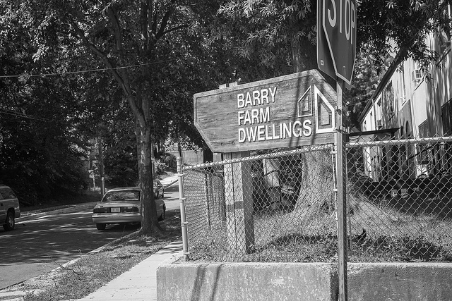 The Barry Farm community dates back to after the Civil War, when it became a settlement for freed slaves. The National Capital Housing Authority built the housing project with more than 400 units designed for families in the neighborhood in 1943. While residents in the neighborhood enjoy a close proximity to the Anacostia Metro station, closely-connected neighbors, and a popular community basketball league, it’s also been plagued by crime and poverty over the years.
