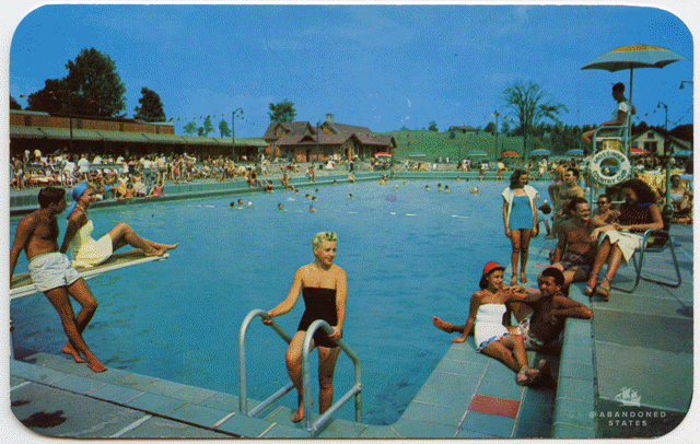 The indoor pool at Grossinger’s, which opened in 1958. Elizabeth Taylor attended the pool’s opening, and Florence Chadwick – the first woman to swim the English Channel in both directions – took the first dip in it. From Ross Padluck’s excellent “Lost Architecture of Paradise”: “…The new indoor pool at Grossinger’s was the zenith of the Catskills. Nothing quite like it had ever been built, and nothing ever would be again. It represented everything about the Catskills in the 1950s-style: extravagance, luxury, modernism and celebrity.”